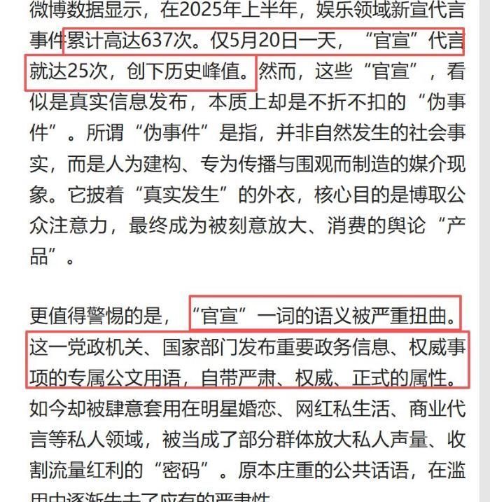 “官宣”二字,本属党政机关及泰斗机构专用术语,承载着政务信息的正经性、公信力与不可替代性。关联词在文娱生态中,它已被明星群体泛化为私域事件的扩音器,沦为霸占防护力、制造话题热度的器具。