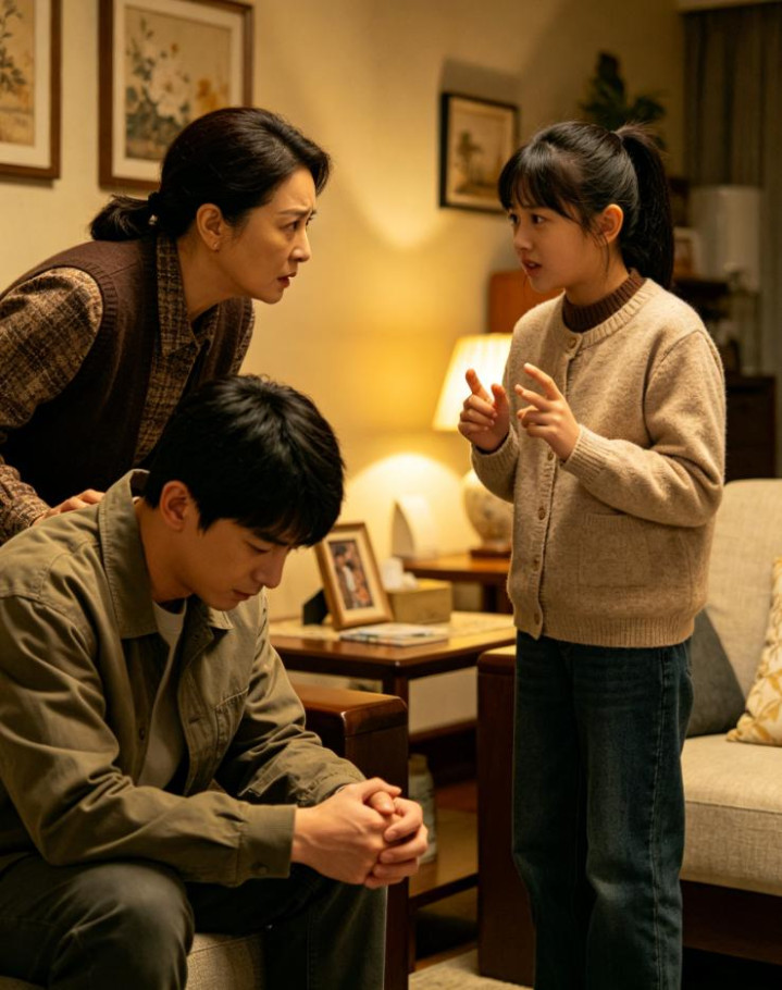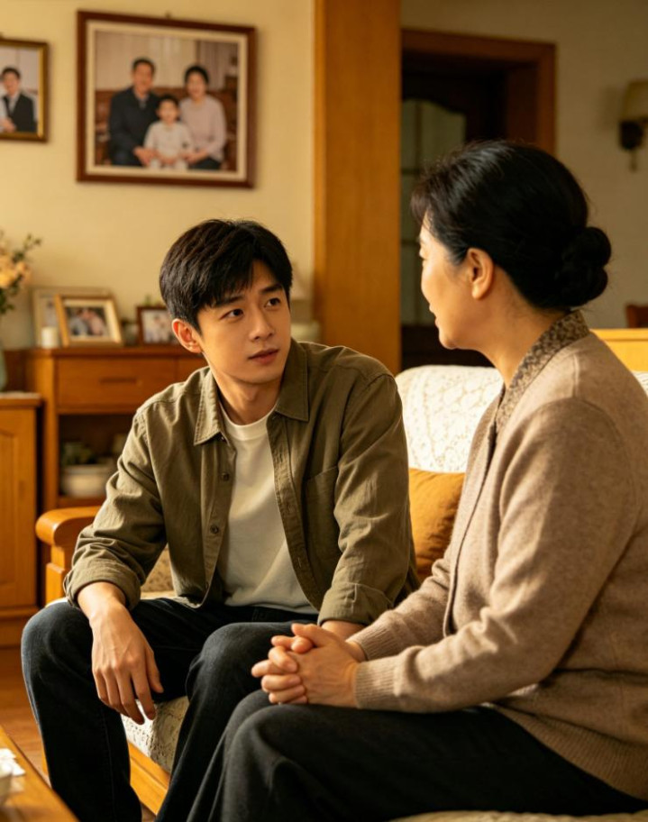 客厅里莫得开大灯,唯有一盏昏黄的落地灯亮着。我看到小雅的姆妈披着一件旧棉袄,独自坐在沙发上,手里拿着一个旧式的相册,正在发怔。茶几上放着一杯还在冒着热气的水。