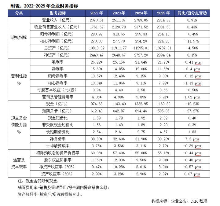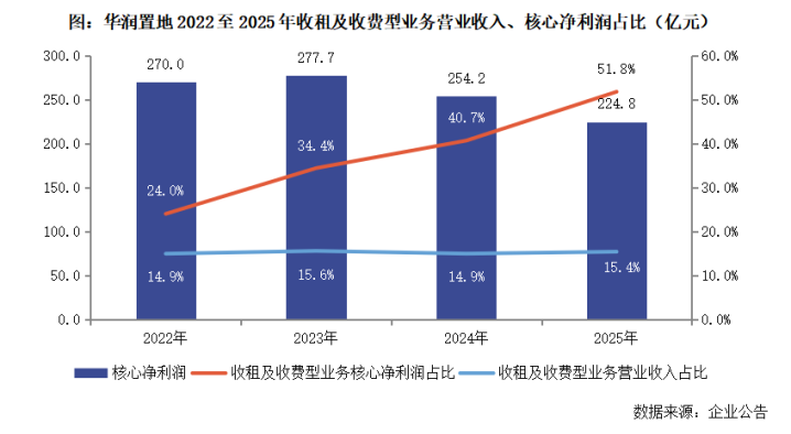 2025年华润置地已毕买卖收入2814.4亿元,同比增长0.9%,归母中枢净利润224.8亿元,同比减少11.6%。