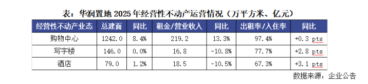 经营性不动产收租型业务方面,主要通过购物中心、写字楼和旅店等优质不动产得回房钱收益。从2025年的经营情况来看,企业写字楼的房钱收入为16.8亿元,同比减少了10.8%,出租率为77.7%,同比提高了2.8个百分点。旅店的买卖收入为18.5亿元,同比减少了10.5%;入住率为67.3%,同比提高了3.1个百分点。合座来看,在出租率/入住率提高的情况下,写字楼和旅店业务在收入增长方面仍然存有一定的压力。预测在“十五五”末,经营性不动产收租型业务营收将自在在300亿元以上。