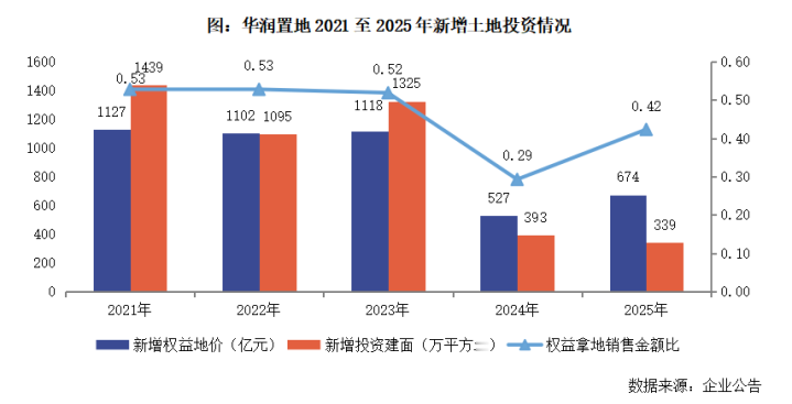 2025年华润置地新获取名堂33个,新增地盘投资权柄地价673.7亿元,权柄拿地销售金额比回升至0.42(2024年:0.29),一二线城市投资占比99%,其中一线城市占比64%。