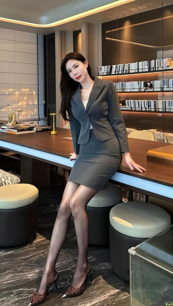 你的位置:开元棋牌官方网站入口 > 抢庄牛牛 > 开元app “灰色竖条纹工作套装+豹纹高跟”, 大方多礼又有个性