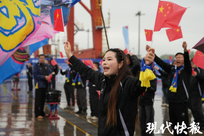 当六合午3时许,在泰州海事局三艘巡缉艇的指令伴航下,英武的泰州舰破浪而来,渐渐向泰州国外集装箱船埠靠泊。身着皎洁军装的官兵们在船面上整皆排队,向家乡东谈主民挥手致意。船埠上,翘首以盼的各界代表挥舞着国旗,皆声高呼“泰州舰,接待回家!”现场沮丧犀利。