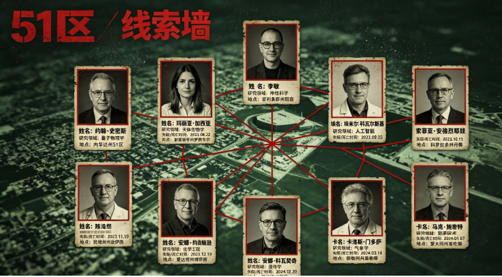 近三年来,好意思国至少10名顶尖科研东谈主员接连“离奇”死一火或深奥失散。由于他们大都战斗航空航天、原子能商酌或“不解航行物”等涉密模式,且“隐没”的模式惊东谈主相同,好意思国鸠合平台贪念论四起,联邦政府不得不突破千里默,得意彻查这些案件。