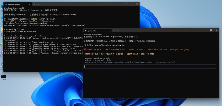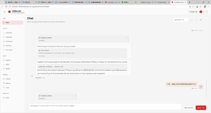 在部署完成后,我们不错平直在PowerShell中输入:OpenClaw Dash干涉它的网页端界面。