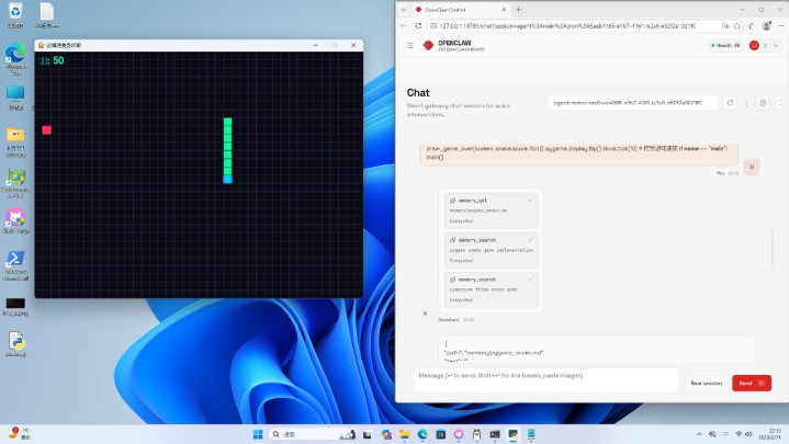 由于省去了云表传输的关节,代码的生成过程相称利落,莫得那种断断续续的磨蹭感,并且无需任何Tokens用度资本。不到一分钟,圭臬生成结束,结尾自动调用Python,游戏窗口弹出并领略运行。