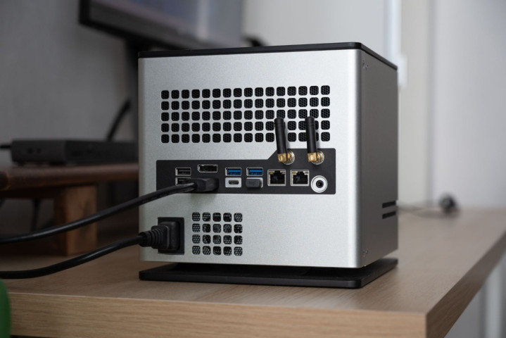 这台机器他们没定位成平凡的Mini PC,而是桌面级Mini AI责任站。它的个头比略微大一圈,但这多出来的体积换来的是实打实的散热效果。