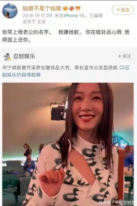 更有甚者,当某营销号转发都溪出席外洋时装周的视频,并标注“宋宁峰前妻”时,张婉婷奏凯转发并配文:“请别带上我丈夫的名字,我嫌她脏。”