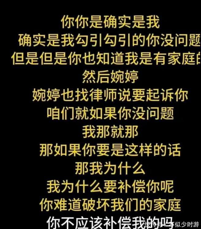 但移时之间便切换态度,言之成理地责骂:“你明晰我已婚,凭什么要我抵偿?浮松他东谈主家庭的是你,难谈不该你来补偿我?”